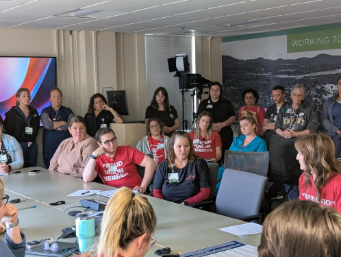 Because members of both unions worked together to file safe staffing forms, grievances, supported the petition, and spoke directly to the hospital management about concerns for safe staffing and high-quality patient care, the hospital has agreed to return to the previous staffing policy.